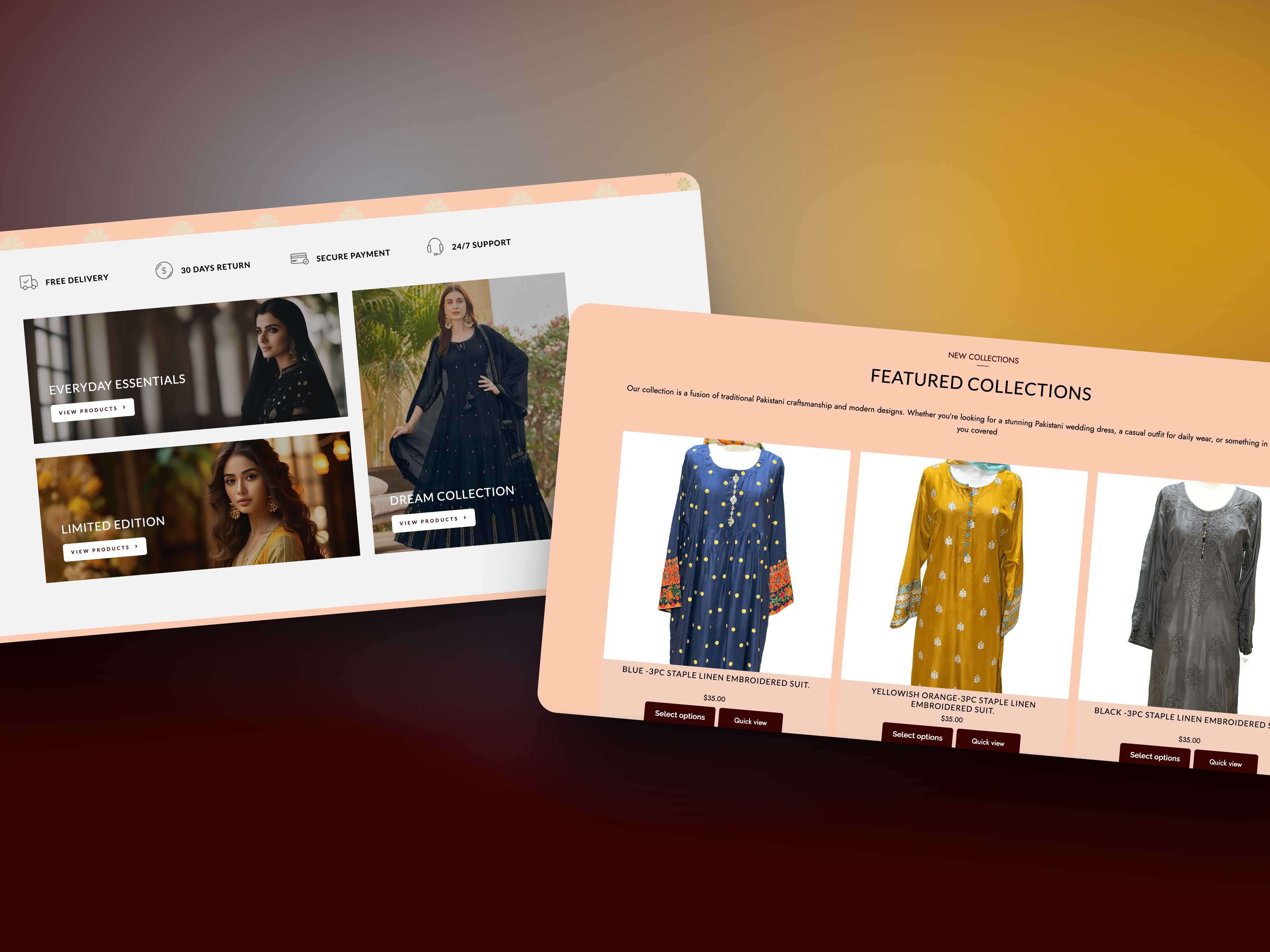 Notre collection met en valeur la richesse des textiles pakistanais, des broderies artisanales et des designs traditionnels, tout en intégrant des touches modernes pour répondre aux goûts contemporains.
