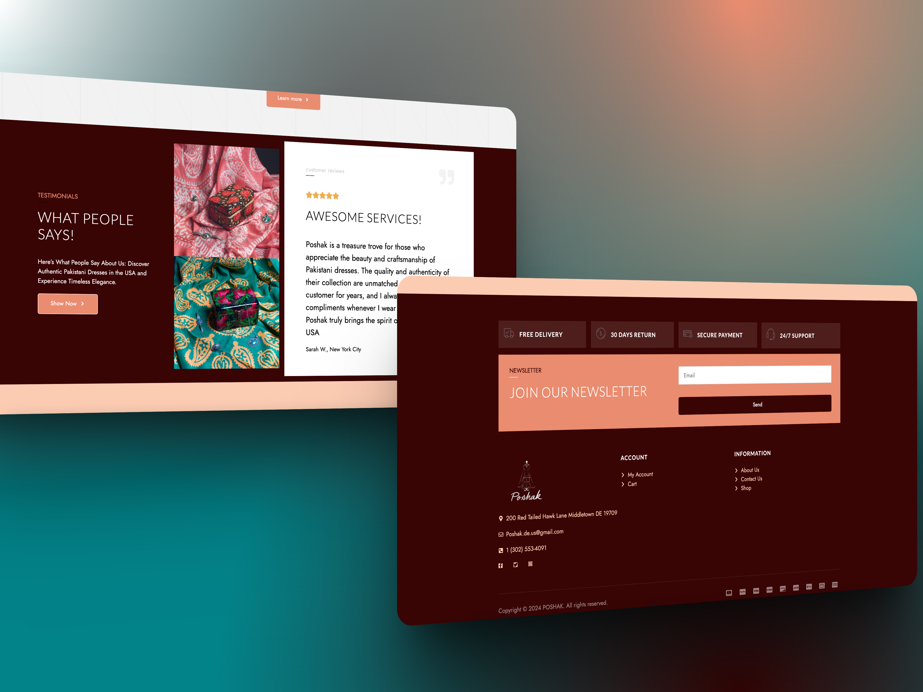 Poshak est votre destination pour des vêtements pakistanais authentiques et élégants pour femmes. Notre collection met en valeur la richesse de l'artisanat traditionnel pakistanais, avec des pièces soigneusement sélectionnées pour leur qualité et leur authenticité.